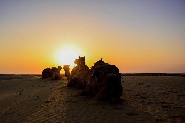 Enjoy the view of the Great Thar Desert from our Camel safari tour. from the pick-up point of City we will take you to cultural villages and Empty village to show the desert life by jeep and you'll cross the desert national park. from the great thar desert you will have around 2 hours camel ride. unlimited water bottles, dinner with indian less spicy curry and entertainment by our local camel guys from the desert guaranteed . we will accommodate you under the billion stars with cosy blankets and mattress to experience the real desert experience.